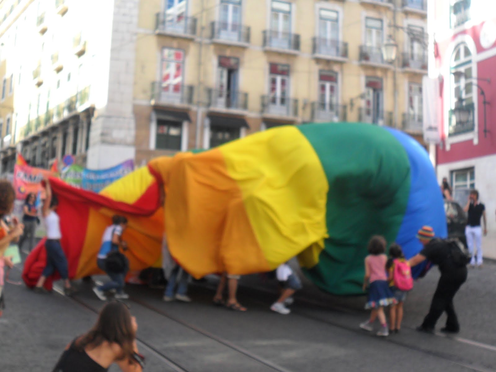 na praça do Rossio, contra os participantes na Assembleia Popular"Democracia Verdadeira Já".