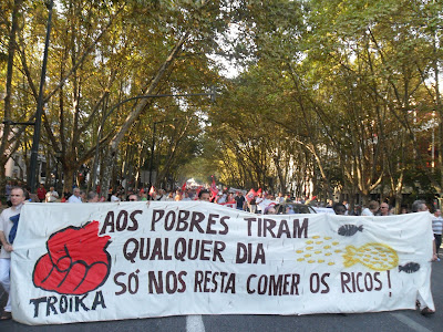 Ontem cerca de duas centenas de milhar de pessoas desceram à rua contra a ofensiva anti-popular do governo PSD/CDS, prostado perante os ditames do FMI. Foi assim nas duas principais cidades do país, Lisboa e Porto.